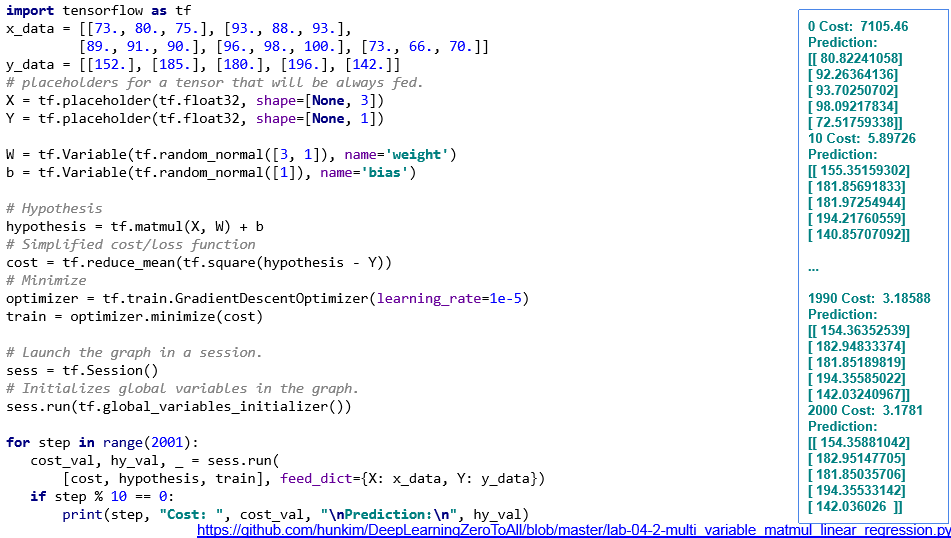 4-2. Tensorflow를 이용한 Multi-variable linear regression구현 본문
