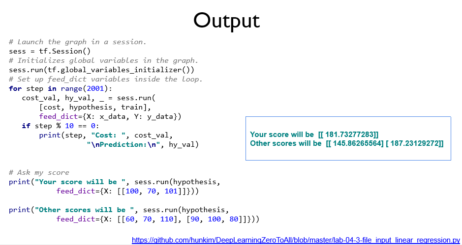 | 4-2. Tensorflow를 이용한 Multi-variable linear regression구현 (0) | 2019.11.06 |